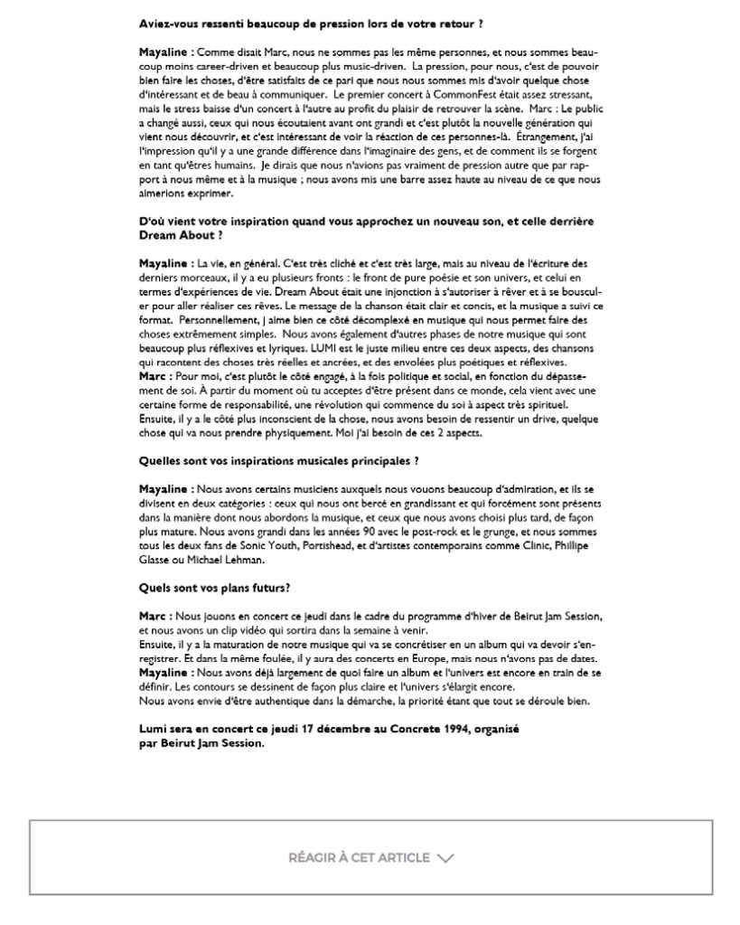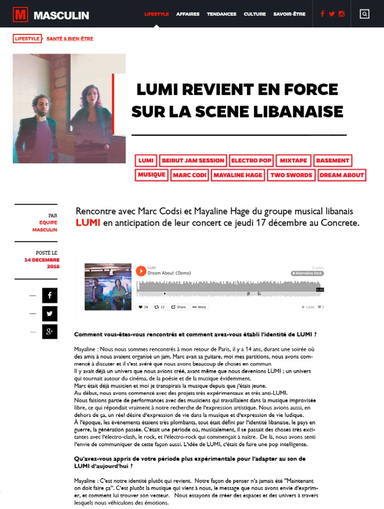 Rencontre avec Marc Codsi et Mayaline Hage du groupe musical libanais LUMI en anticipation de leur concert ce jeudi 17 décembre au Concrete 1994.